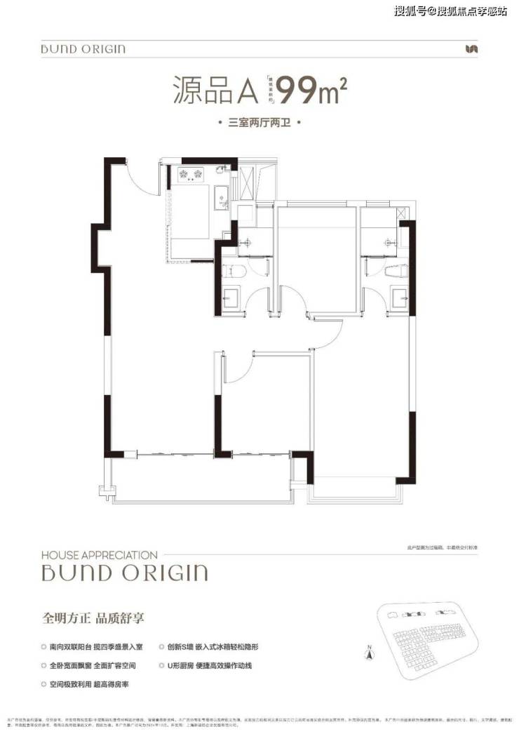 ⤴️ 中建壹品 外滩源著售楼处热线☎️☎️:400-9966-940✔️✔️ 建面约99㎡3房2厅2卫,非常标准的动静分离、三开间朝南户型。