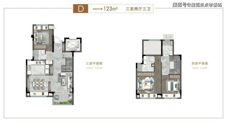约123平上叠3房户型,共上下两层,全明设计,格局开阔,宽景阳台,上承天空,下承生活。