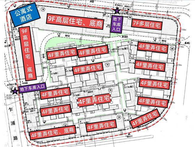 根据设计方案显示,项目拟建8幢4层里弄住宅,1幢7层多层住宅,1幢9层小高层,及底商和酒店;未来将供应38套叠墅、27套里弄合院别墅、59套小高层。