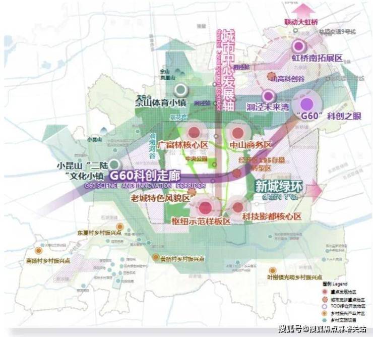 枢纽之城:上海西南门户、9台23线松江南站交通枢纽之城,打造“站城一体,四网融合”