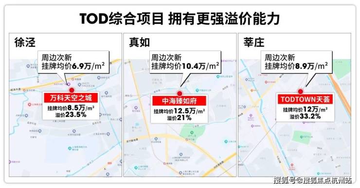 √遥遥领先的溢价能力:相比普通楼盘,TOD综合项目本身更有溢价,也更保值,像莘庄天荟、万科天空之城等都已给出了更有说服力的结论。