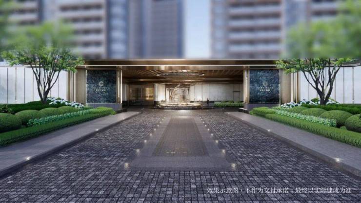 归家仪式上:社区主入口借鉴了高定酒店式的入口氛围。