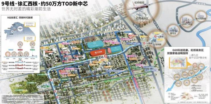 交通方面,该项目位于9号线泗泾站地铁上盖,算是比较纯正的地铁盘;进站后,3站可达目前房价约7万的七宝,再坐3站可达目前房价约10万+的漕河泾、再3站就是房价约13万+的中央活动区徐家汇!项目周边已经比较成熟,无明显不利因素,北侧是成片的次新商品房社区,城市界面尚可;此区域也算是泗泾站附近最后一片成规模开发的区域,随着泗泾站TOD项目的落地,也将改变泗泾无大型商业综合体的局面!