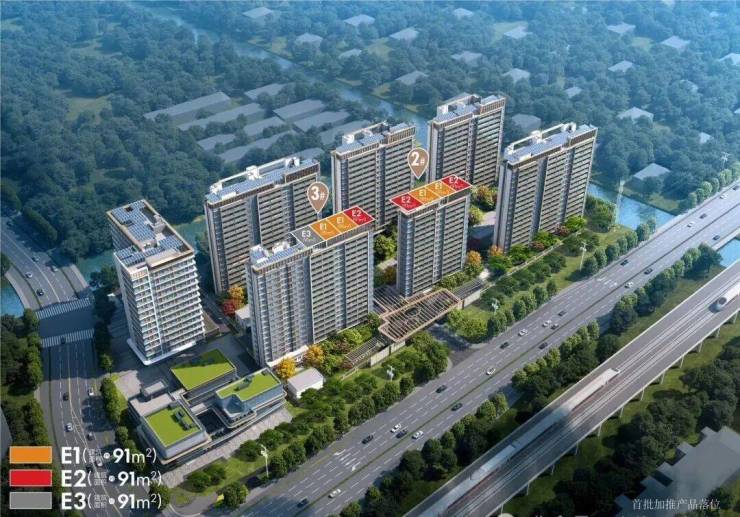 整个社区的北侧与东侧双面环水、西侧是商业,不止有繁华的城市街景,更有滨水风光,光这个社区的占位和天赋,就已经足够出色。