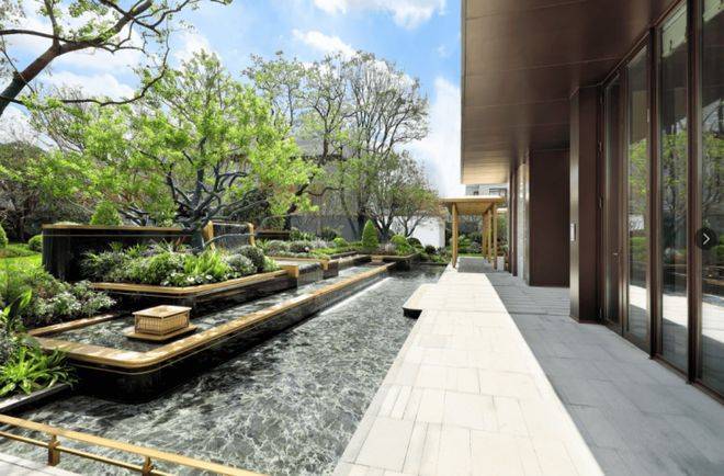 设计融合自然:把 “公园” 搬进售楼处。项目名称里的 “公园” 不是噱头 —— 售楼处采用大面积玻璃幕墙 + 原木色调,室外的绿植景观透过玻璃映入室内,搭配休息区的藤编家具和盆栽,进门就有 “逛公园般的放松感”,和项目紧邻桃浦中央绿地的宜居属性相呼应。
