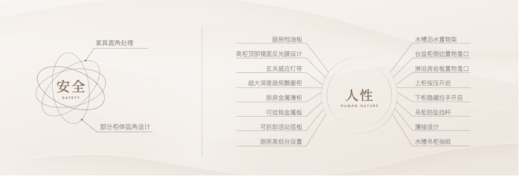 譬如说部分柜体更安全的 圆角处理 、高柜顶部一窥到底的 镜面反光膜 、大大提高空间利用的 薄抽 ,不用弯腰一踢即开的 踢脚抽 设计,便利性大大增加;