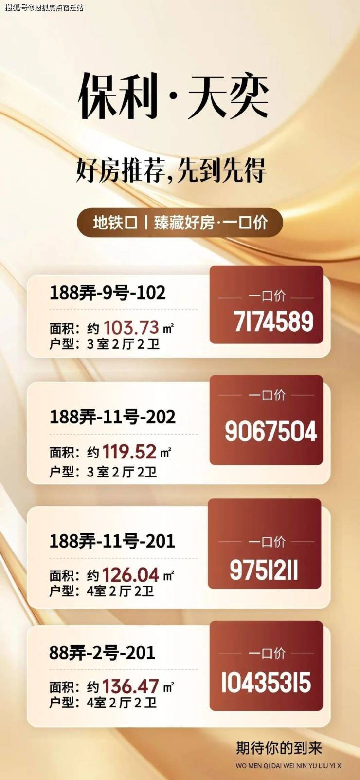 据悉,【 保利·天奕】 即将加推建面约104-135㎡3-4房, 过会均价82929元/㎡ ,10月15日认购。产品面积段对于现代家庭结构的适配性非常友好,而且做了很多针对性开创。