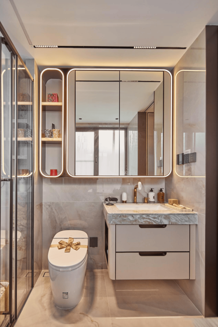 【保利天奕】 特别关注到女性的生活需求,专门在卫生间配备了 美妆龙头、美妆镜柜、美妆冰箱 ,采用“ 顶+面双补光照明 ”,能把“女本位”需求做到如此细致,目前没有几个项目能做到!