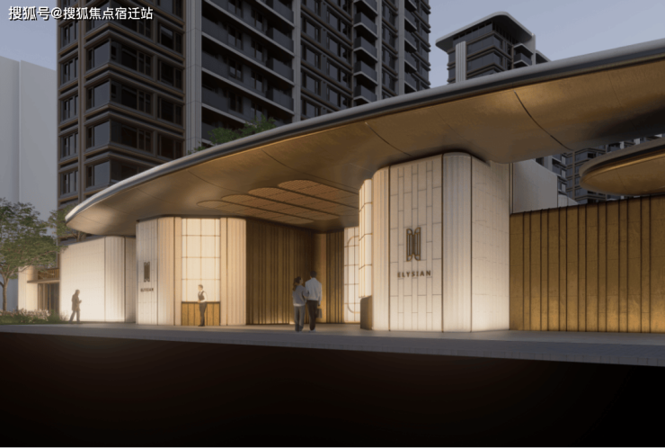 蓝灰色玻璃+仿石铝板+艺术涂料 材质,穿插优雅线条,让建筑这张“脸”看起来更高级。 One&Only酒店式门头 。用 雕塑体块、温润弧面和雅致线条 ,营造具有艺术格调的归家仪式感。