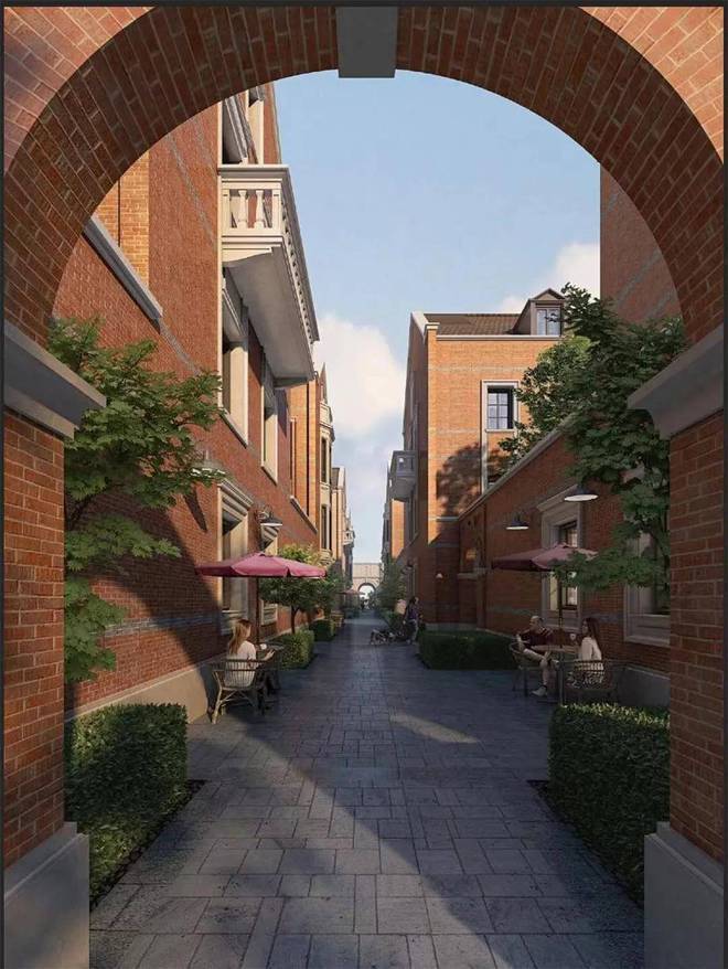 新湖·天潼198售楼处热线:400-9955-415☎️☎️✅✅《官方认证》由GOA大象设计操刀,保留外滩“石库门+里弄”肌理,复刻19世纪经典海派建筑元素。外立面采用红砖、石材与铜质构件,搭配雕花门头、铸铁栏杆,重现老上海风情。内部合院采用行列式布局,还原典型里弄肌理。