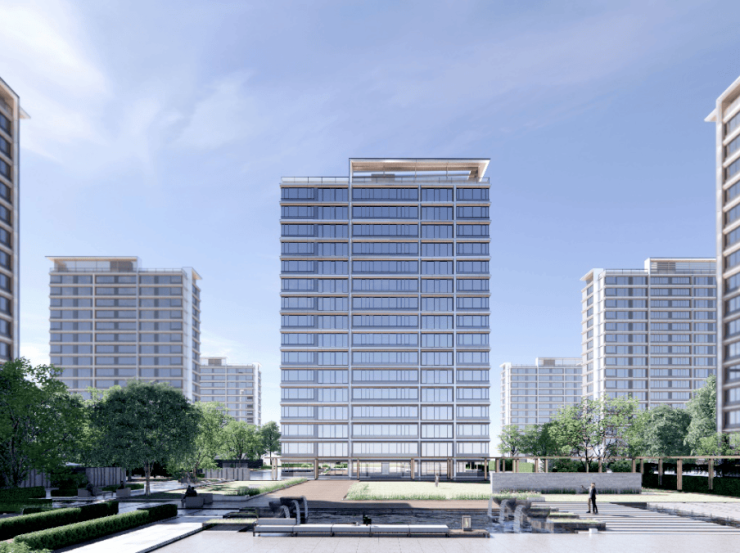 【建筑风格】现代简约风,外立面采用大面积玻璃加铝板,打造非对称L型立面,材质造价更高,抗腐蚀性程度更高。