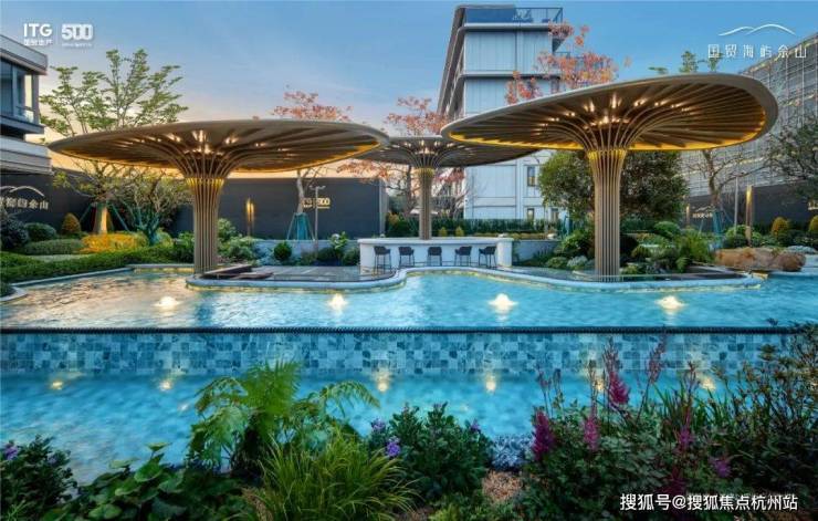 景观方面,海屿佘山项目营造的是酒店美学之下的度假感社区。