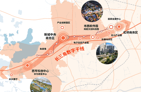 比如产业,其他新城多以传统工业+新兴产业为支柱,而青浦新城独树一帜,大力发展数字经济,承接虹桥商务区、西岑科创中心、市西软件信息园的创新辐射及产业链延伸,打造“长三角数字干线”,形成科技中心,产业发展势能极其庞大。
