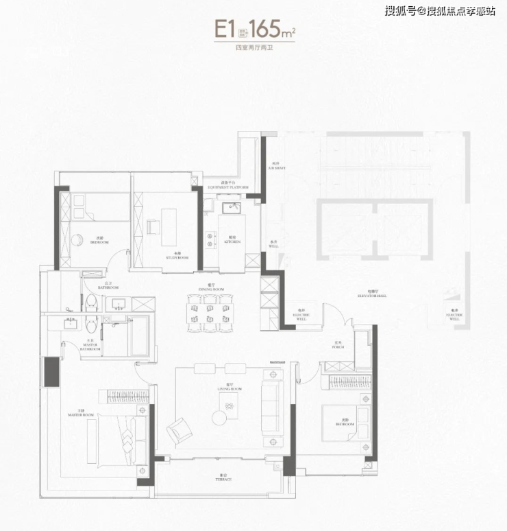 来到165㎡个户型,已经上升到上海主流的大户型改善面积段,但看设计思路,可以看出是为满足多胎家庭成长而服务的。