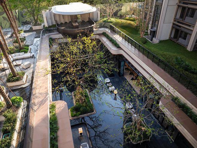 实景呈现的岛屿水院,作为☀︎保利天奕售楼处电话:400-8787-740☎☎☀︎五座全球大师花园之一,在银海枣树阵、下沉式庭院、镜面池畔卡座的呼应中,成为未来居者沉浸自然的惬意之地。温柔闲适的落日廊吧,犹如身处海岛之畔,感受蓝调时刻的优雅情调。