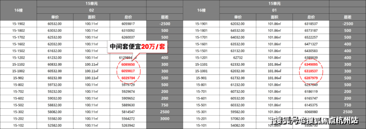节选自项目一房一价表