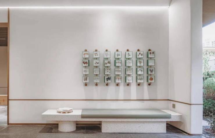 地上入户大堂采用中式经典构图方法——框景,打造未进门,先见景的效果。中国人一直讲究,生活中处处有景。框景的工艺就是能做到从任何一个框望过去都是景色,角度不同景色也不同,一步一景的效果。