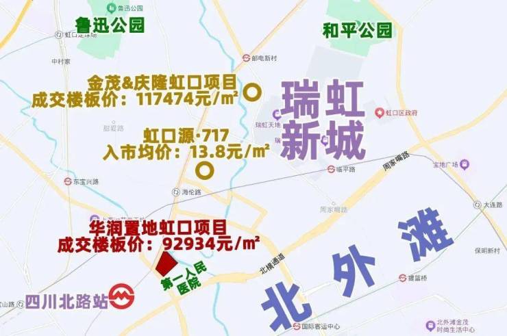 地块位于就在第一人民医院北侧,南侧约200米就是北外滩,北侧即为瑞虹新城,项目直线距10号线四川北路站约400米。