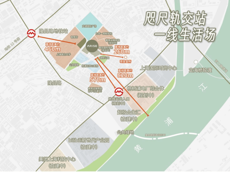 交通教育双维兜底:项目北区直线距离轨交12号线隆昌路站约450米串联南京西路、陆家嘴等核心区,4站达北外滩、7站抵静安寺;项目北区旁规划九年一贯制学校+复旦系国际学校,2公里内聚集同济大学附属存志学校、平凉路第三小学等12所优质学府,全龄教育链成型;三甲新华医院、杨浦中心医院,健康保障无忧。