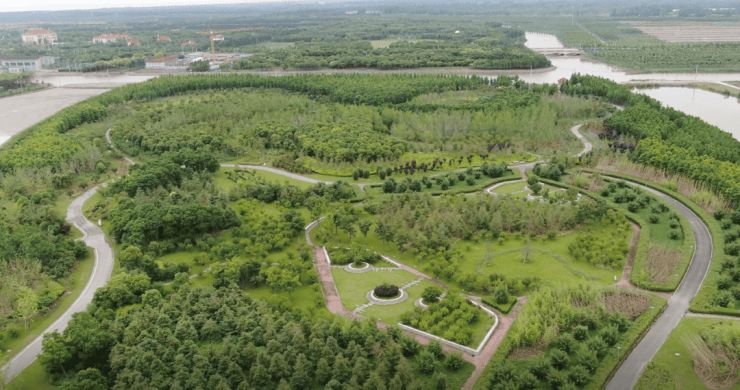 更难得的是,上实和风院东北两面的东滩生态园,就是自家门口的负离子天堂!