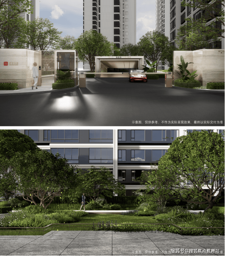 一进城市落客广场,取窗景与漏景结合的传统设计手法,营造从城市与社区无界的氛围感。