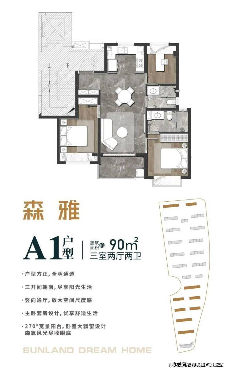 建面约90㎡3房2厅2卫户型▼