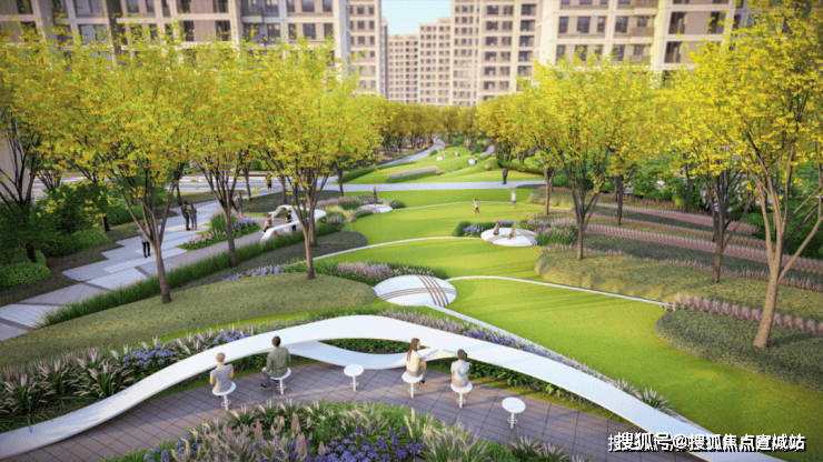 中轴对称的景观大花园布局,融合简约现代的立面风格,将提升社区整体形象与气质。