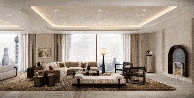 而对于顶级豪宅来说,除了地面的景观之外,更关心的是空中的风景。之所以将最贵户型安排在东侧,将客厅和主卧室也靠近东侧,其实是有原因的。