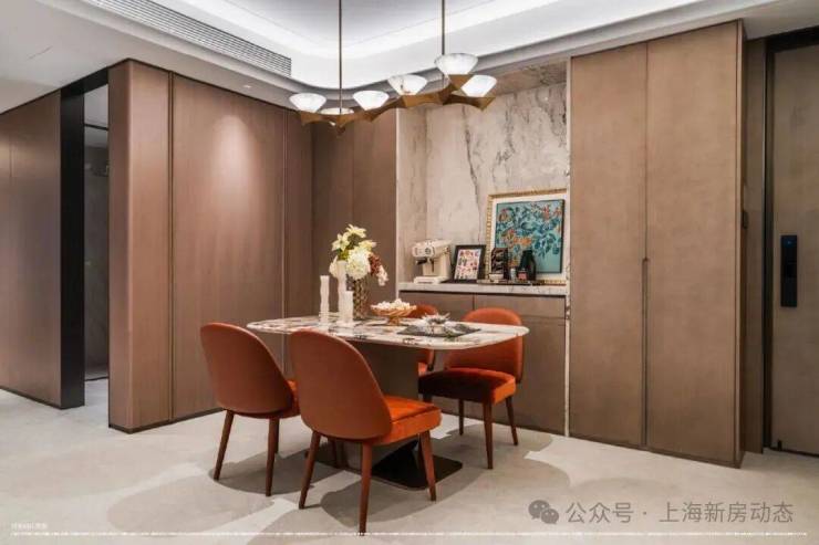 在豪宅的配置之外,精装细节亦追求极致:公共区域选用80×80cm的大理石通铺,以整面石材的厚重质感彰显空间格调,同时采用无缝拼接工艺,显著降低了日常清洁的难度。