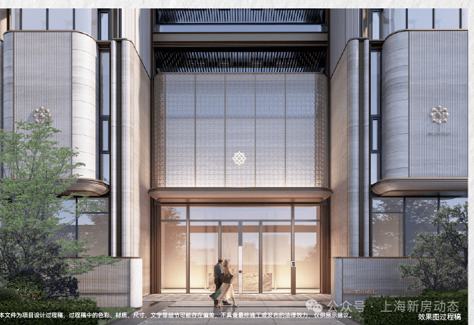 项目打造现代海派风格的外立面,线条简洁大气; 社区规划六重生活体验空间,从酒店式落客入口、镜面水庭到美学花园,旨在将高端酒店的奢享基因融入日常生活。