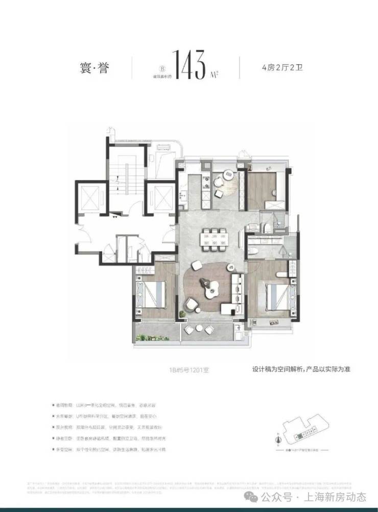 项目2个地块合计570多套房源,主力面积段包括建面约100-143㎡3-4房,誉静安首开96套建面约143㎡4房,具体户型如下: