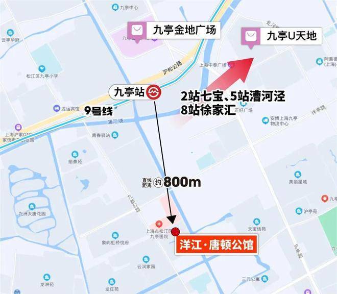 地铁9号线九亭站距本小区直线距离800米,步行15分钟即可到达,可直达徐家汇和世纪大道;自驾出行便捷,嘉闵高速、嘉金高速贯穿南北,沪松公路、沪昆高速纵横东西;虹桥火车站和虹桥机场距本小区10公里不到的距离。