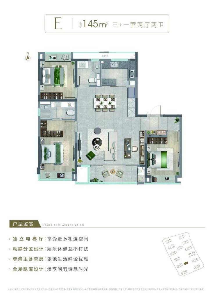阔绰边厅+景观大飘窗的设计,将阳光和景观充分引入室内。