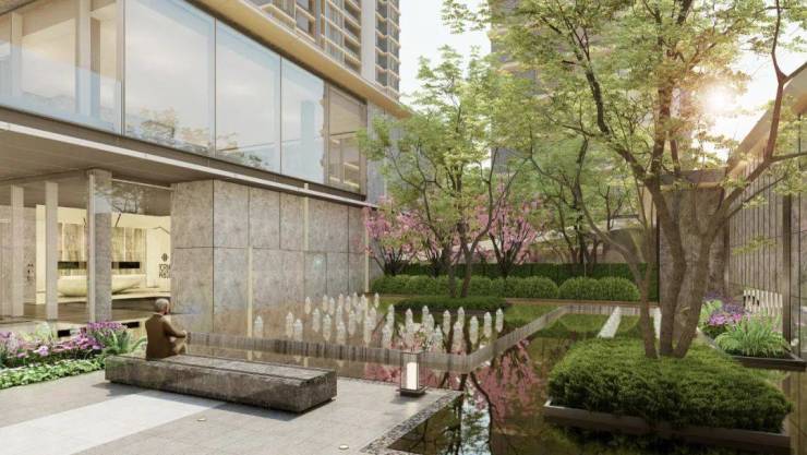 项目设置尊享南北入户双客厅,南区入户客厅设置景观水景+艺术雕塑+大尺度门头+精致花园,让归家的仪式感和尊崇感备至!