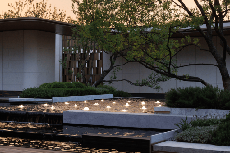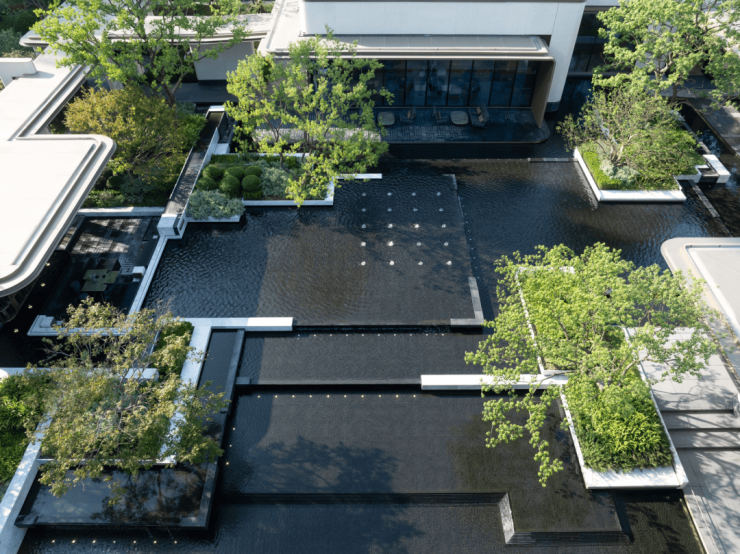 示范区首批次公开的约650㎡的无界水院,通过层层叠水与精选树种的巧妙搭配,展现了水院的悠然意境。