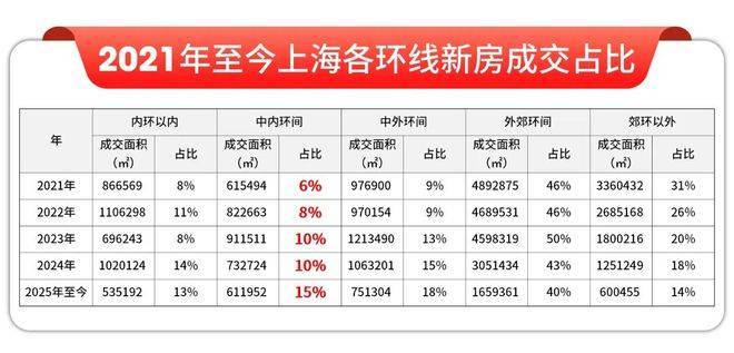 据网上房地产成交数据显示,内中环间成交占比从2021年的6%提升至2025年的15%,占比翻了2.5倍,位居各环线之首!