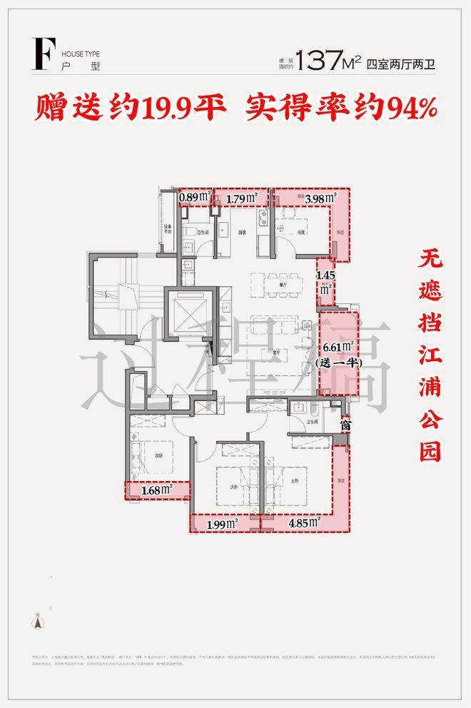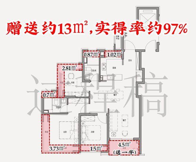 赠送面积达到了惊人的约13㎡,实得率约97%!