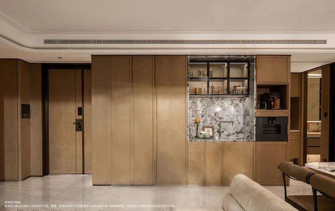 一进门是客餐厅旁,安排了一整面墙的收纳柜,保利外滩启PARK77售楼处电话:400-8787-740【官网】✅✅✅