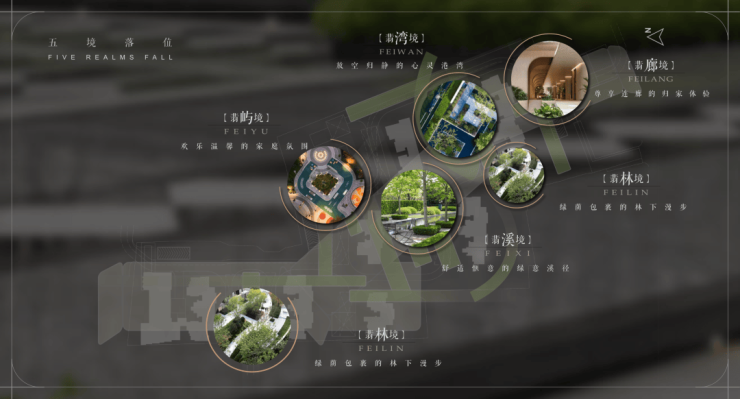 项目园林规划“翡色五境”五大空间氛围,匠造融入时光、人文海派、自然与艺术、家庭与邻里的“四轴、三园、五区、一吧”四大功能空间,设计“春赏花、夏赏绿、秋赏叶、冬赏姿”四季有景的长效花园,让您拥抱诗意雅致的生活。