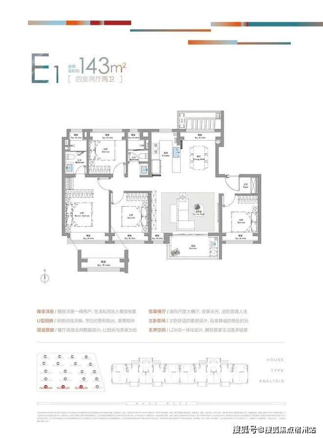 建面约143㎡4房户型图▼