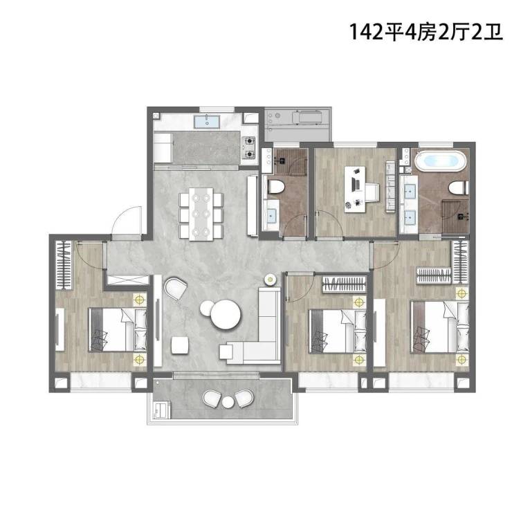 ②建面约142㎡4房2厅2卫,楼王户型,更显尊荣!