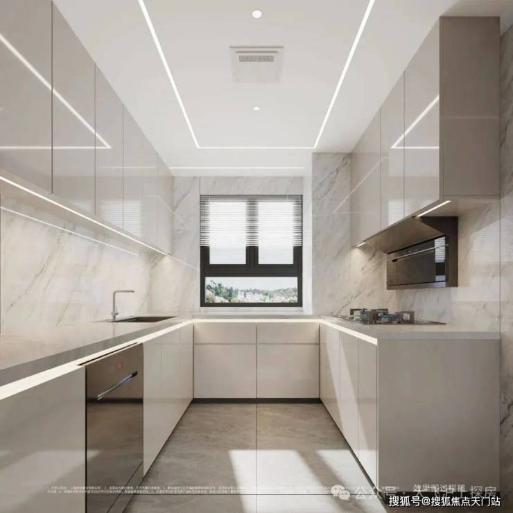 厨房整体橱柜、吸油烟机、灶具、洗碗机、多功能集成一体水槽、凉霸等都是交付标准。