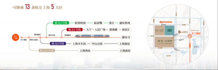 交通能级跃升:约600米直达7号线美兰湖站,一线畅达静安寺,可换乘13条轨交,换乘网络辐射全城;车行同样便捷,沪太公路与S7沪崇高速公路连接南北主干道与外环,高效通达5大核心区域。