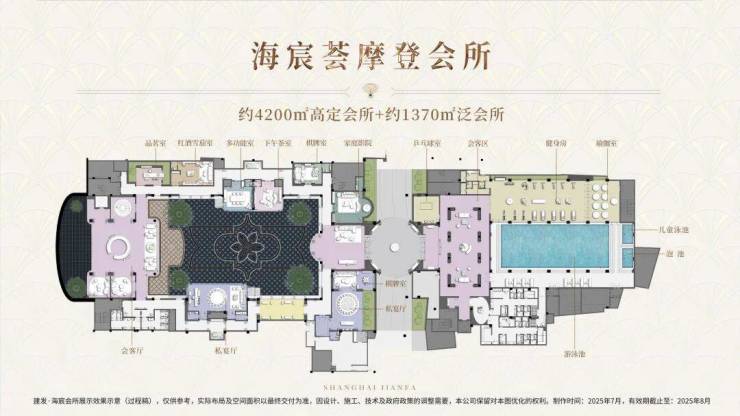 项目为业主配置了 约4200㎡摩登会所与约1370㎡泛会所空间,整体面积超5 500㎡,远超市面上豪宅会所的尺度,你能想到的会所功能这里都能实现!