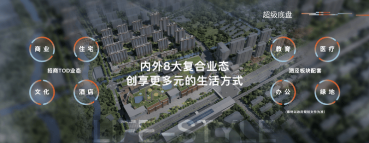 【招商时代潮派】由花园城系商业+滨水国际住区+舒适酒店+文化空间共同组成,总体量约50万方,将打造成为新一代城市TOD标杆。