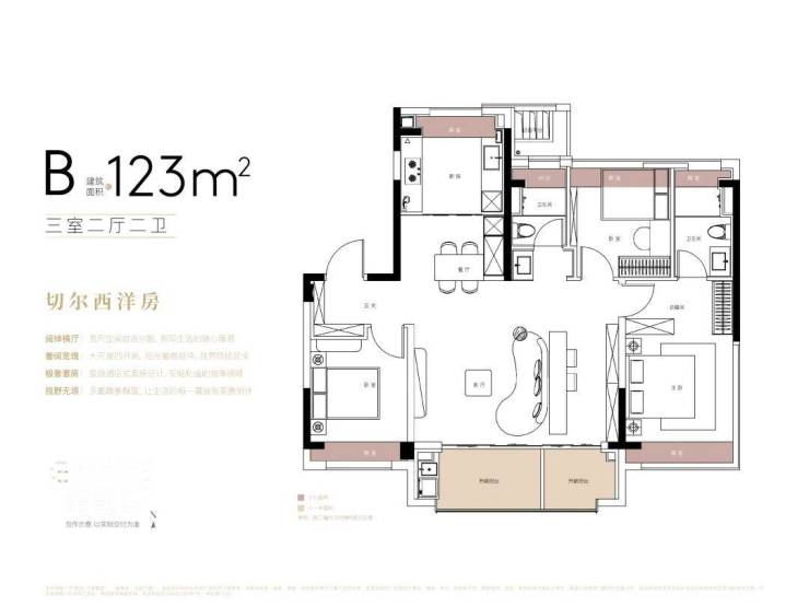 建面约123m3+1房2厅2卫(B户型-横厅),约88套(02-09地块)