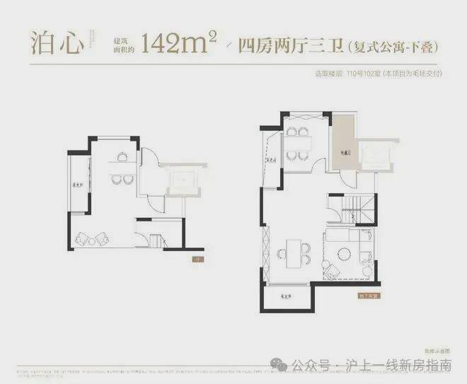 项目叠墅户型有建面约142㎡下叠,建面约139㎡上叠。