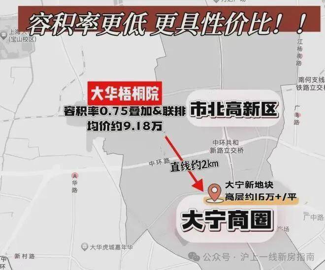 02、其次,项目与市北高新区&大宁商圈的直线距离仅约2km,大宁高层的价格可以买到大华梧桐院的高阶改善别墅!