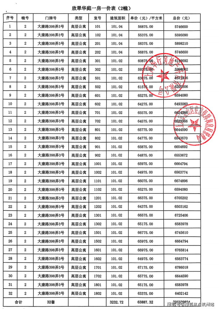 一房一价表 公示