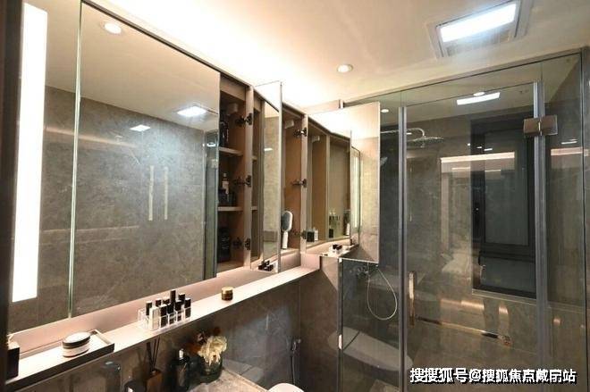 最后值得一提的是,项目还有很多个性化定制设计,包括防雾镜、美颜灯、电热毛巾架、岛台轨道插座(约93㎡户型)、预留美妆冰箱等。